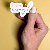 Show yourself love with this vinyl sticker featuring a reminder: you are enough. Adorn your favorite bag, notebook, phone case, or laptop with a reminder of your worth and resilience. This 2.5" sticker will help to keep your spirits high ❤️